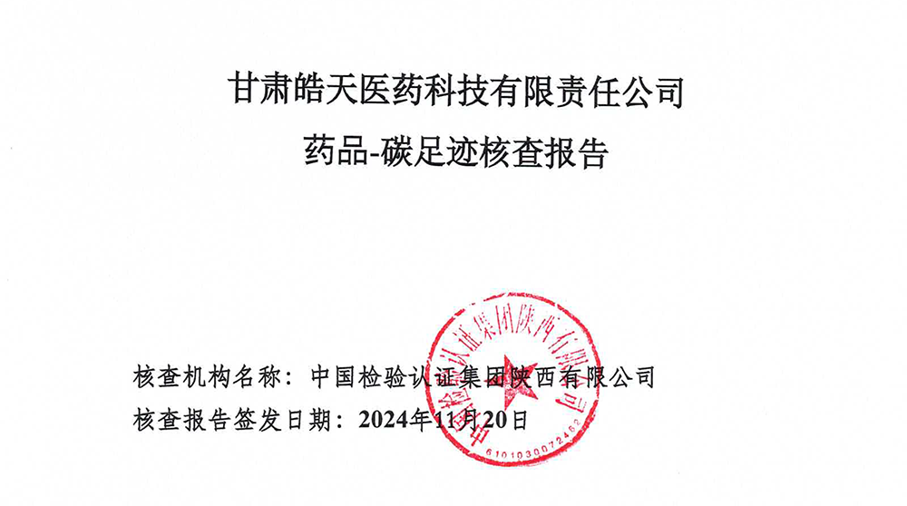 碳足跡核查報告--甘肅皓天醫(yī)藥科技有限責任公司